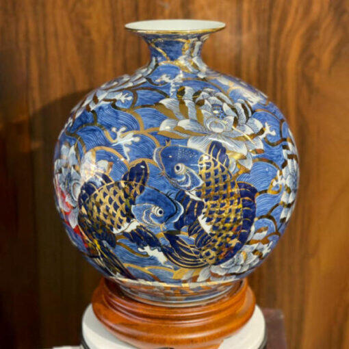 Quà Khai trương Bình hút tài lộc Bát Tràng cá chép vượt biển
